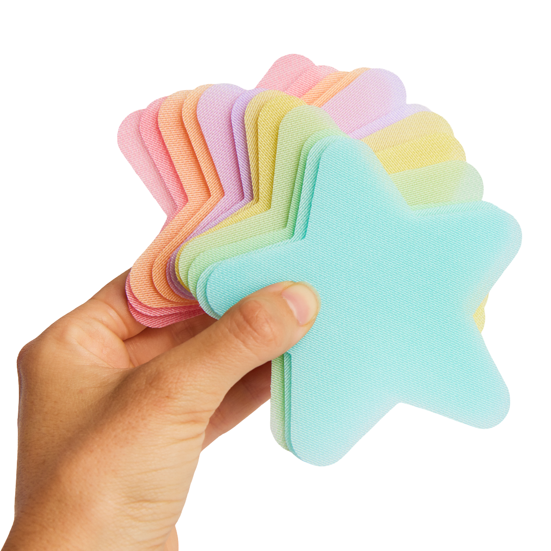 Dotties Pastel Rainbow Star Pack comes with 30 star shaped Dotties in 6 pastel colours to easily manage your classroom! Includes 5 Dotties in each of the following calming colours - purple, blue, green, yellow, orange and pink! Each Dottie has a diameter of 4 inches or a little over 10 cm.